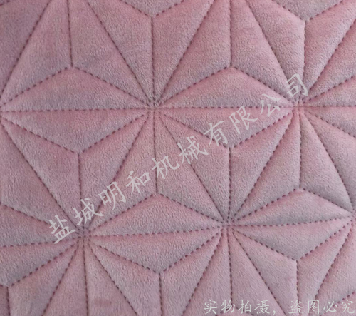 以被褥為例,被褥一般由胎料和外表的紡織物兩部分組成,胎料又有絮胎和散纖之分。散纖狀的被褥胎芯結構和形狀不固定,易流動縮團,厚度不均勻。為了使被褥外層紡織物與內芯之間貼緊固定,使被褥厚薄均勻,將外層紡織物與內芯以并排直線或裝飾圖案式地縫合(包括縫編)起來,這種增加美感與實用性的工序,稱為絎縫,經過這種縫紉過的被褥或褥墊,稱為絎縫被、絎縫墊。過去,絎縫制品基本通過手工完成,產品主要是絎縫被和絎縫墊,它們與一般家庭中使用的被褥之間的區(qū)別在于多了一道絎縫工序,操作程序是先縫后絎。采用千家萬戶作坊式的加工方式,其缺點是產量低、花樣一致性差、操作過程復雜。90年代,機械式多針絎縫機進入中國,產量高,一致性較好,但花樣簡單,變化少,不能倒布,不能打版,以復合為主,加工里料和被芯為主。